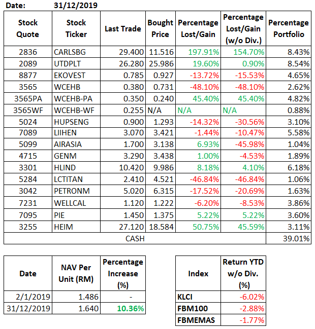 Malaysia Investment Portfolio Performance (Dec/2019)